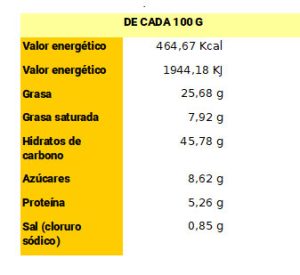 Ingredientes: manteca de cerdo, HARINA DE TRIGO, azúcar, aceite, anís, coñac y gasificante (E-500 II) y acidulante (E-330)