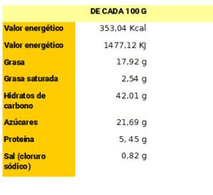 Ingredientes: HARINA DE TRIGO, azúcar, HUEVOS, leche, aceite, chocolate blanco, gasificante (E-500 II) y acidulante (E-330).